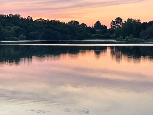 Flock of Canada Geese Water Landing. Lake Darling, Iowa USA